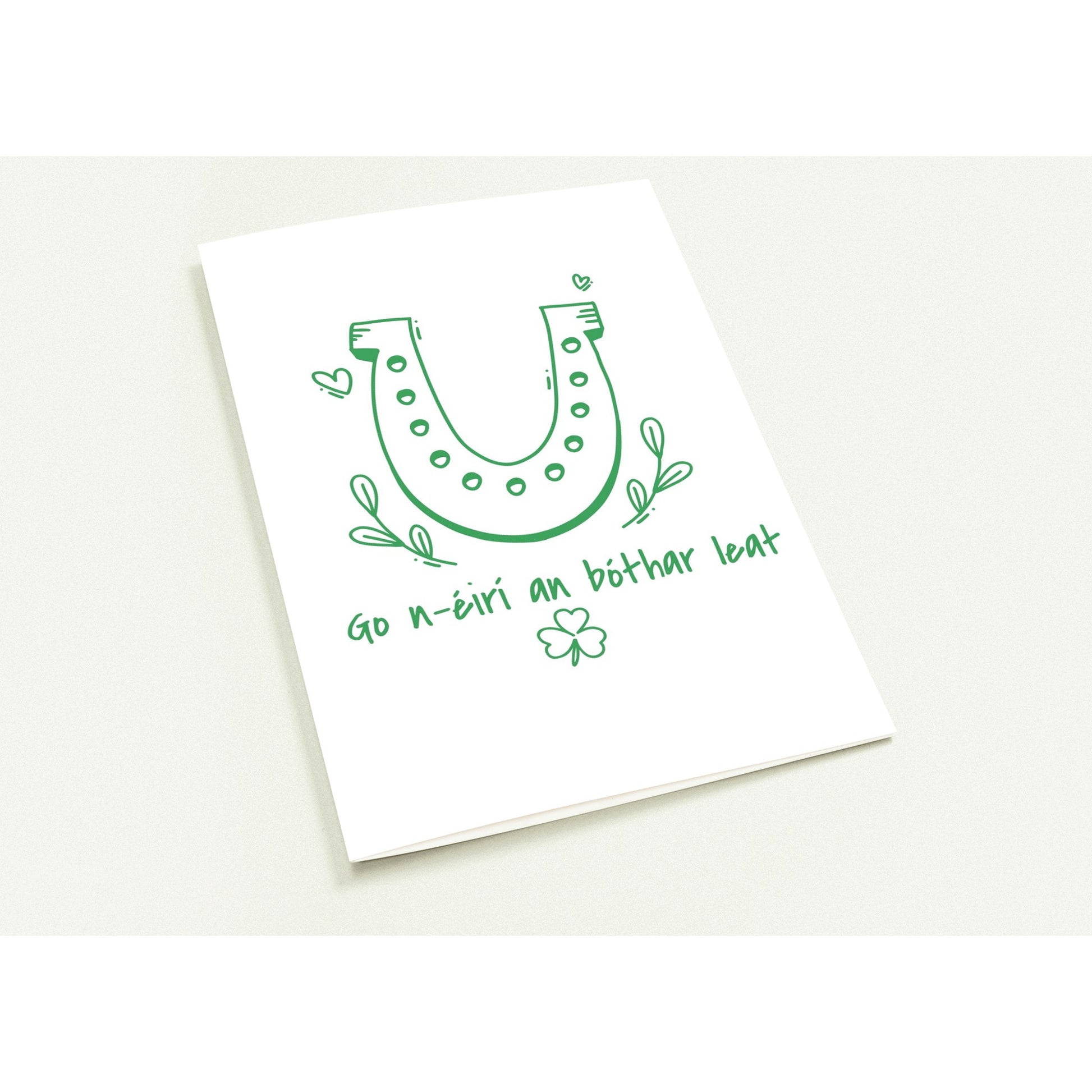 Elevate your well-wishes with our "Go n-éirí an bóthar leat" Greeting Card, a phrase that encapsulates a heartfelt Irish blessing. Translating to "May the road rise with you" in English, this beautifully designed card is a conduit for sharing sincere hopes and positive energy.