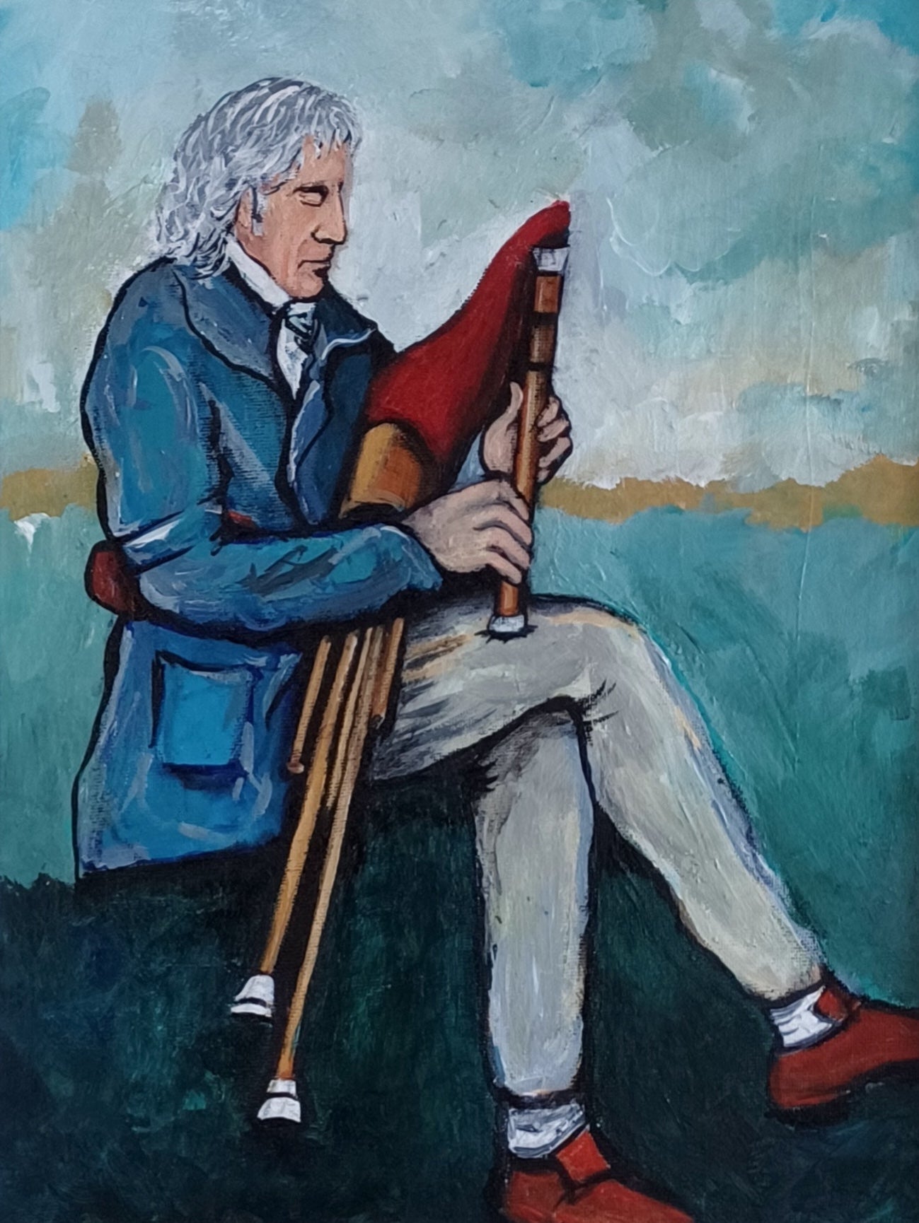 Blind Irish Uilleann Piper Original Painting